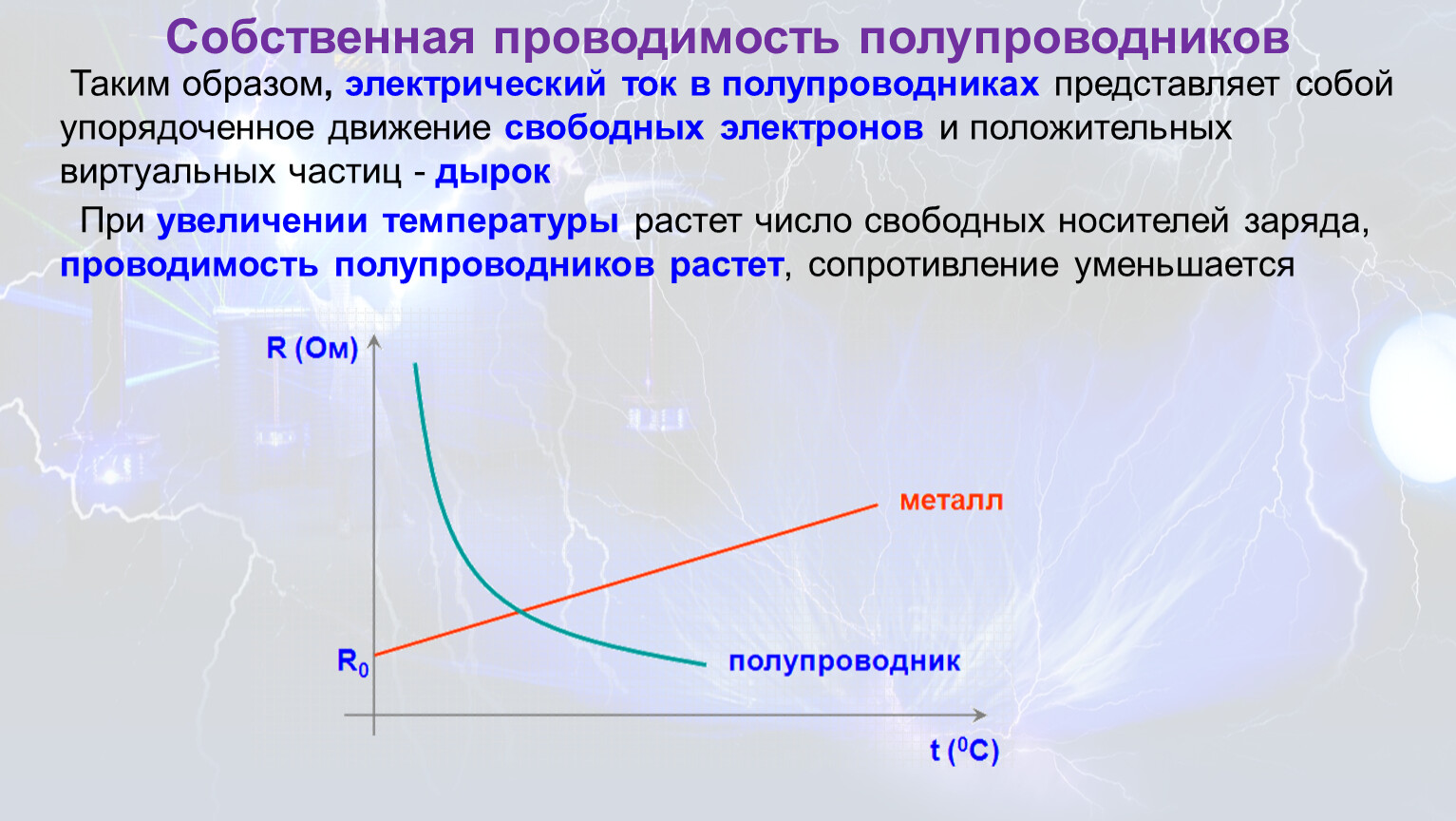 Таким образом, электрический ток в полупроводниках представляет собой упорядоченное движение свободных электронов и положительных виртуальных частиц - дырок