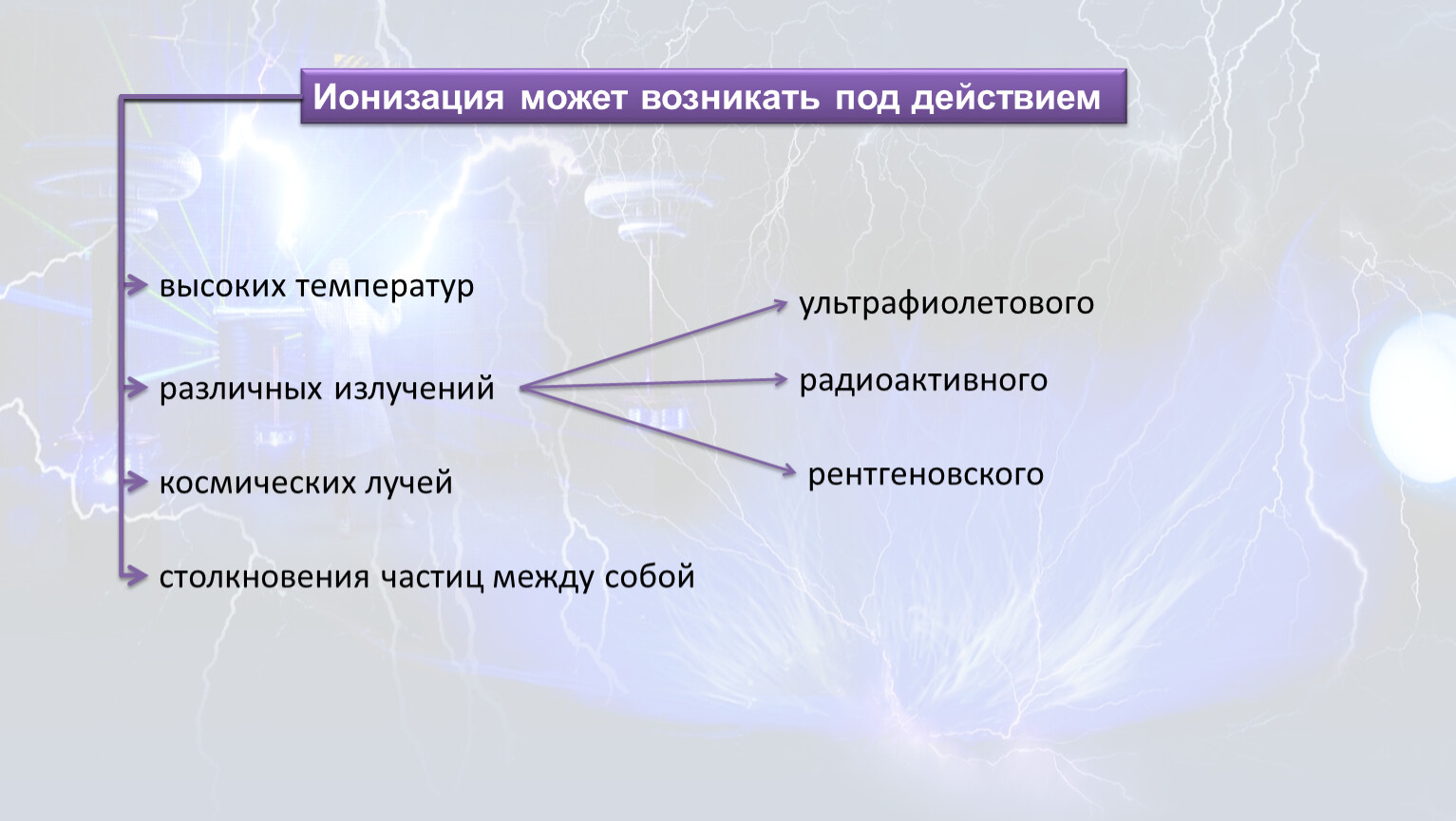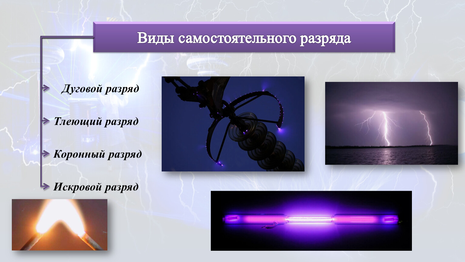 Самостоятельный разряд – существует при отсутствии постоянно действующего ионизатора