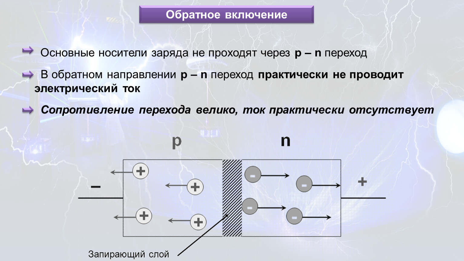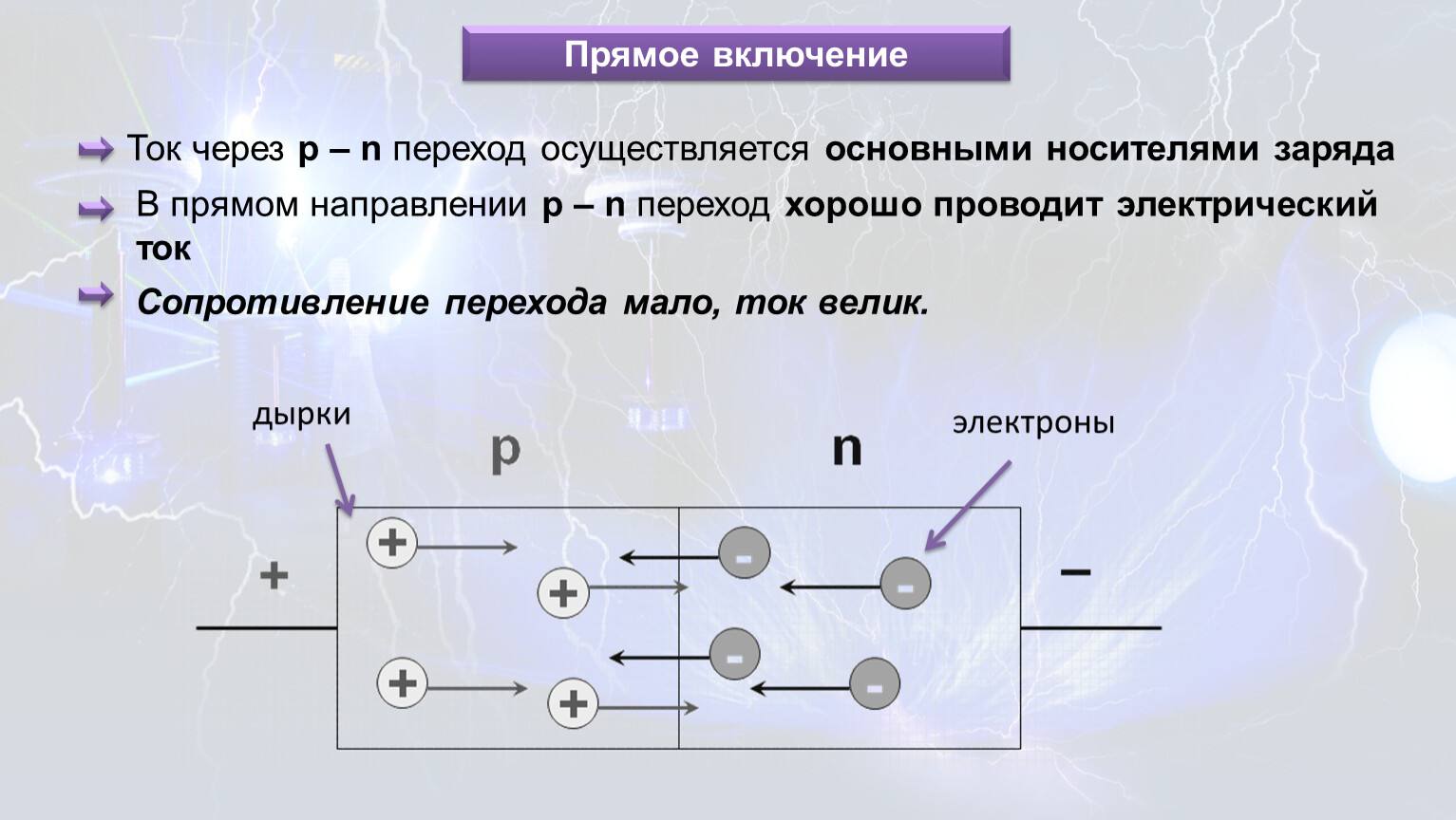 В прямом направлении p – n переход хорошо проводит электрический ток