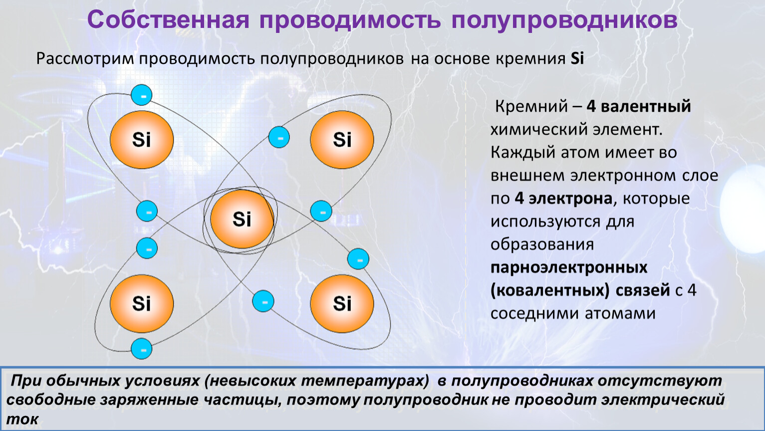 Рассмотрим проводимость полупроводников на основе кремния Si