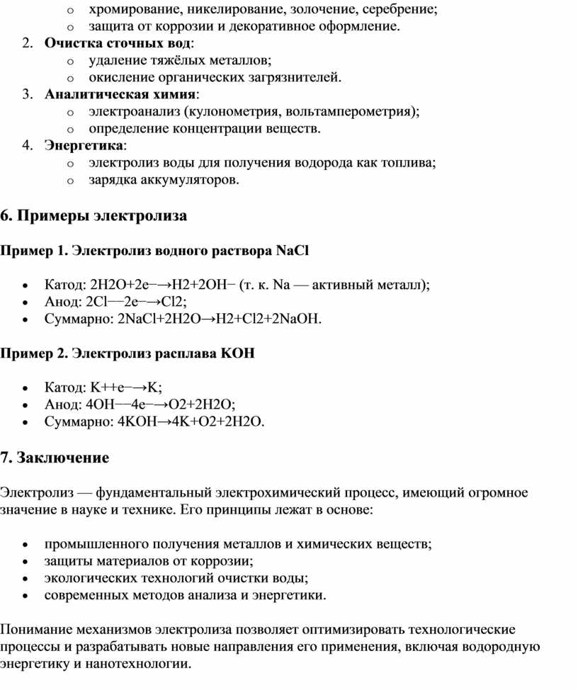6. Примеры электролиза