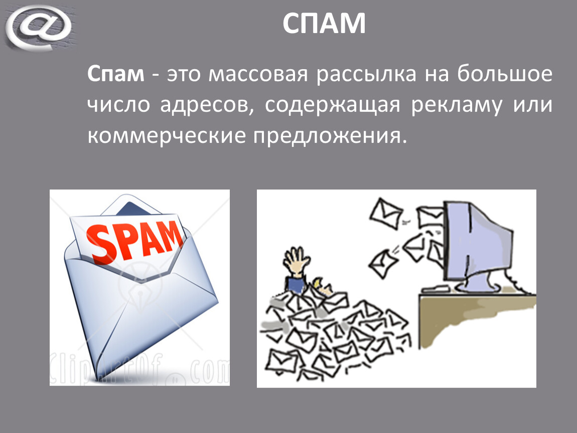 Спам - это массовая рассылка на большое число адресов, содержащая рекламу или коммерческие предложения.