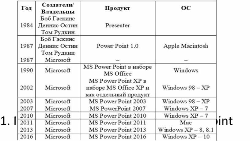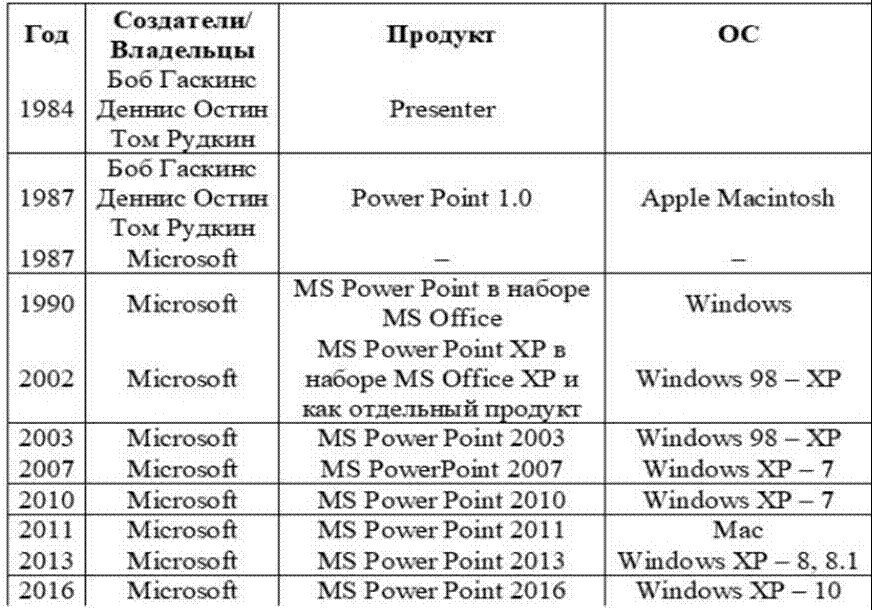 • MS PowerPoint (наиболее популярное средство создания презентаций),
