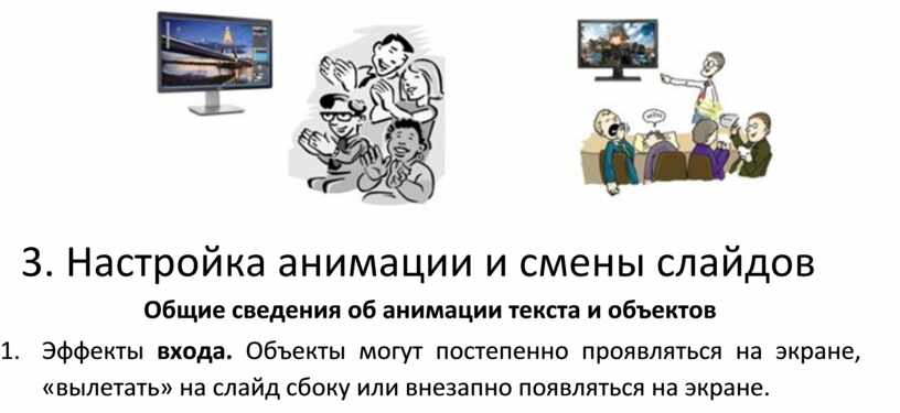 1. Эффекты входа. Объекты могут постепенно проявляться на экране, «вылетать» на слайд сбоку или внезапно появляться на экране.