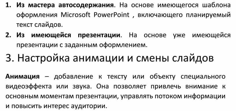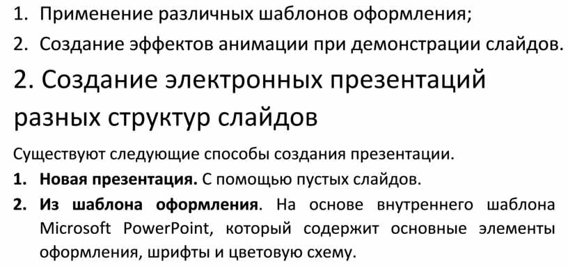 2. Созданиеэлектронныхпрезентацийразныхструктур 3. Настройкаанимацииисменыслайдов