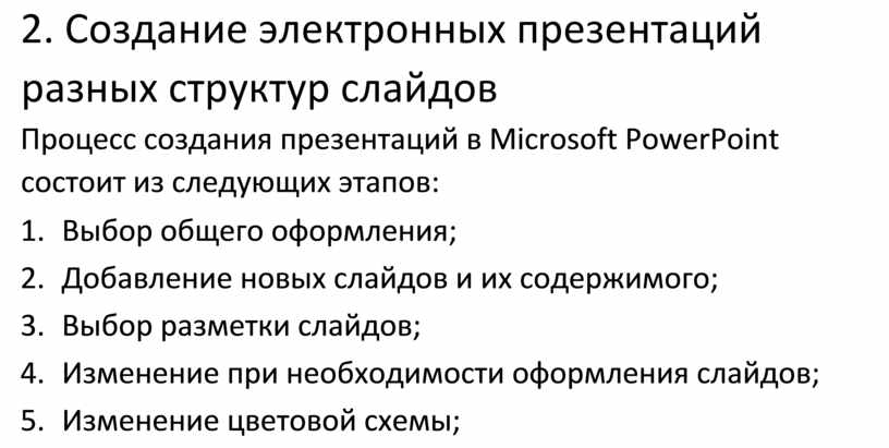 Процесс создания презентаций в Microsoft PowerPoint состоит из следующих этапов: