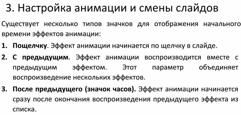 3. После предыдущего (значок часов). Эффект анимации начинается сразу после окончания воспроизведения предыдущего эффекта из списка.