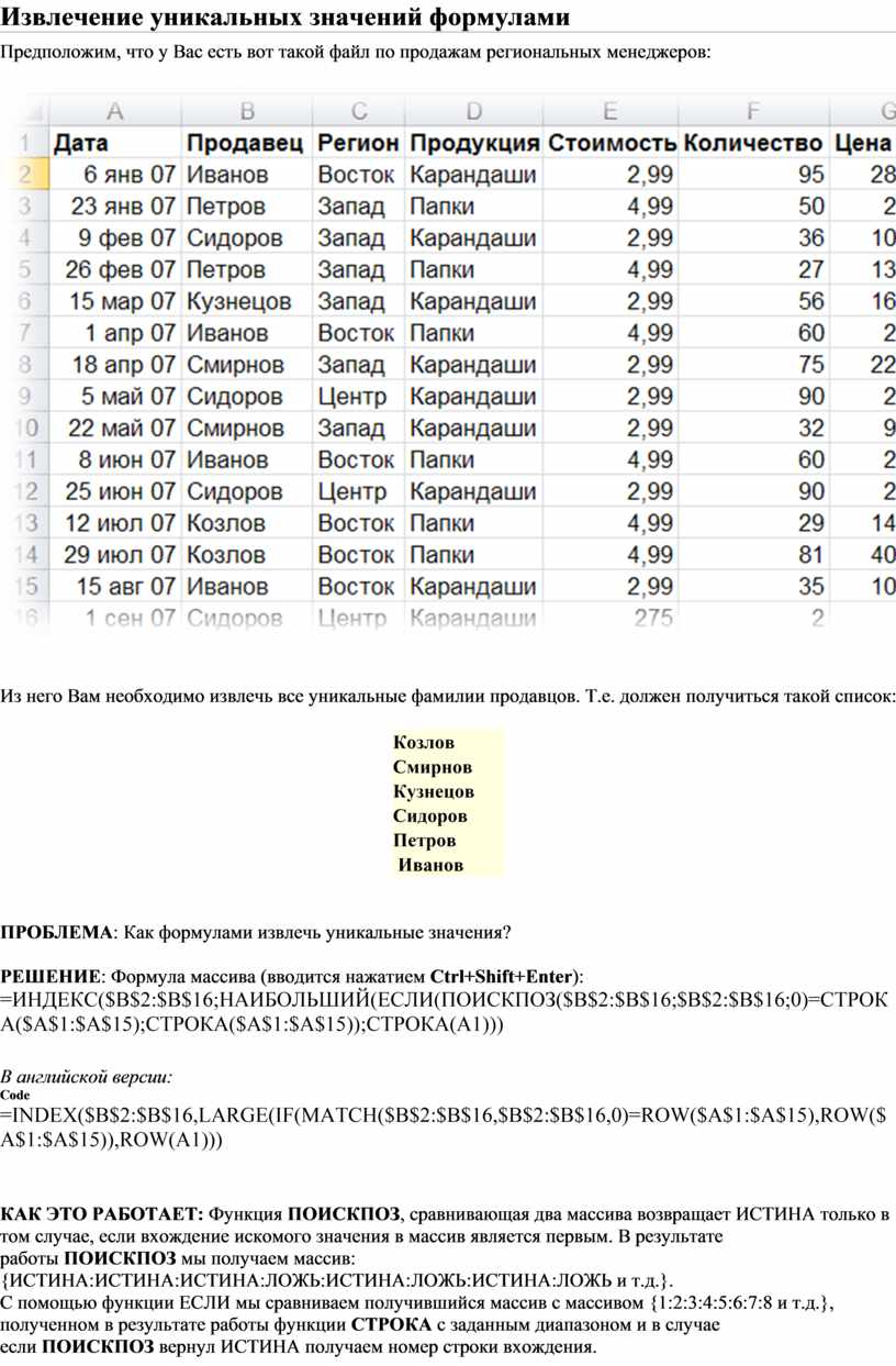 ПРОБЛЕМА: Как формулами извлечь уникальные значения?