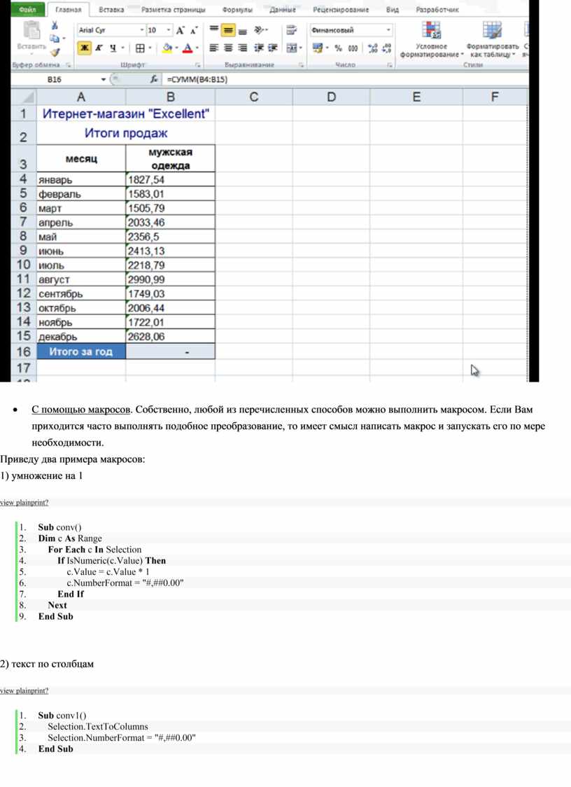· С помощью макросов. Собственно, любой из перечисленных способов можно выполнить макросом. Если Вам приходится часто выполнять подобное преобразование, то имеет смысл написать макрос и запускать его по мере необходимости. Приведу два примера макросов: 1) умножение на 1