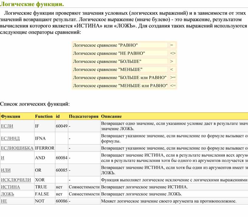 Логические функции проверяют значения условных (логических выражений) и в