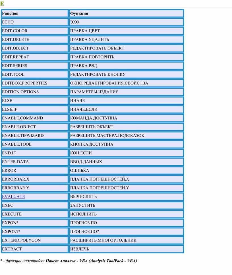 * - функции надстройки Пакет Анализа - VBA (Analysis