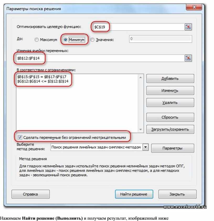 Запускаем Поиск решения и устанавливаем необходимые параметры (см. рисунок)