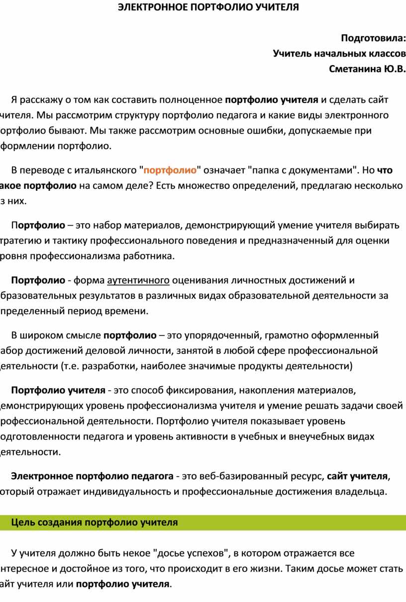 ЭЛЕКТРОННОЕ ПОРТФОЛИО УЧИТЕЛЯ