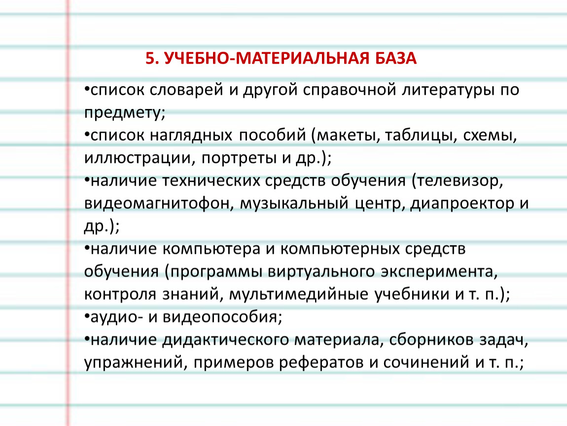 5. УЧЕБНО-МАТЕРИАЛЬНАЯ БАЗА