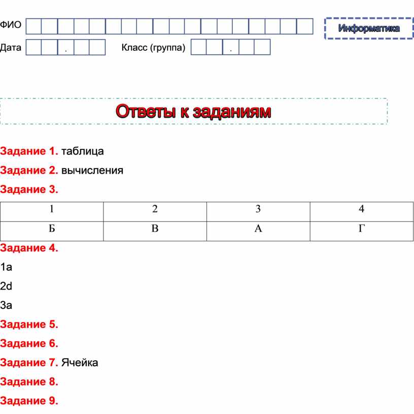 Задание 4. Решите тест