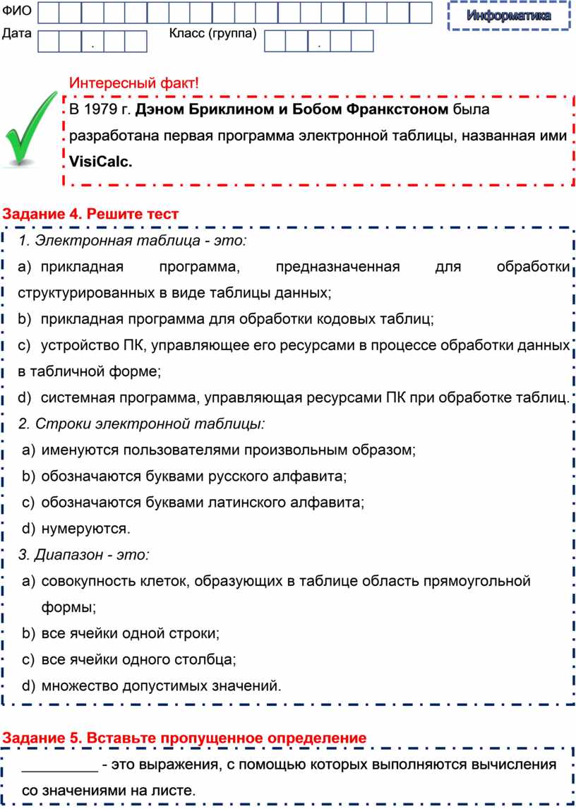 Задание 5. Вставьте пропущенное определение