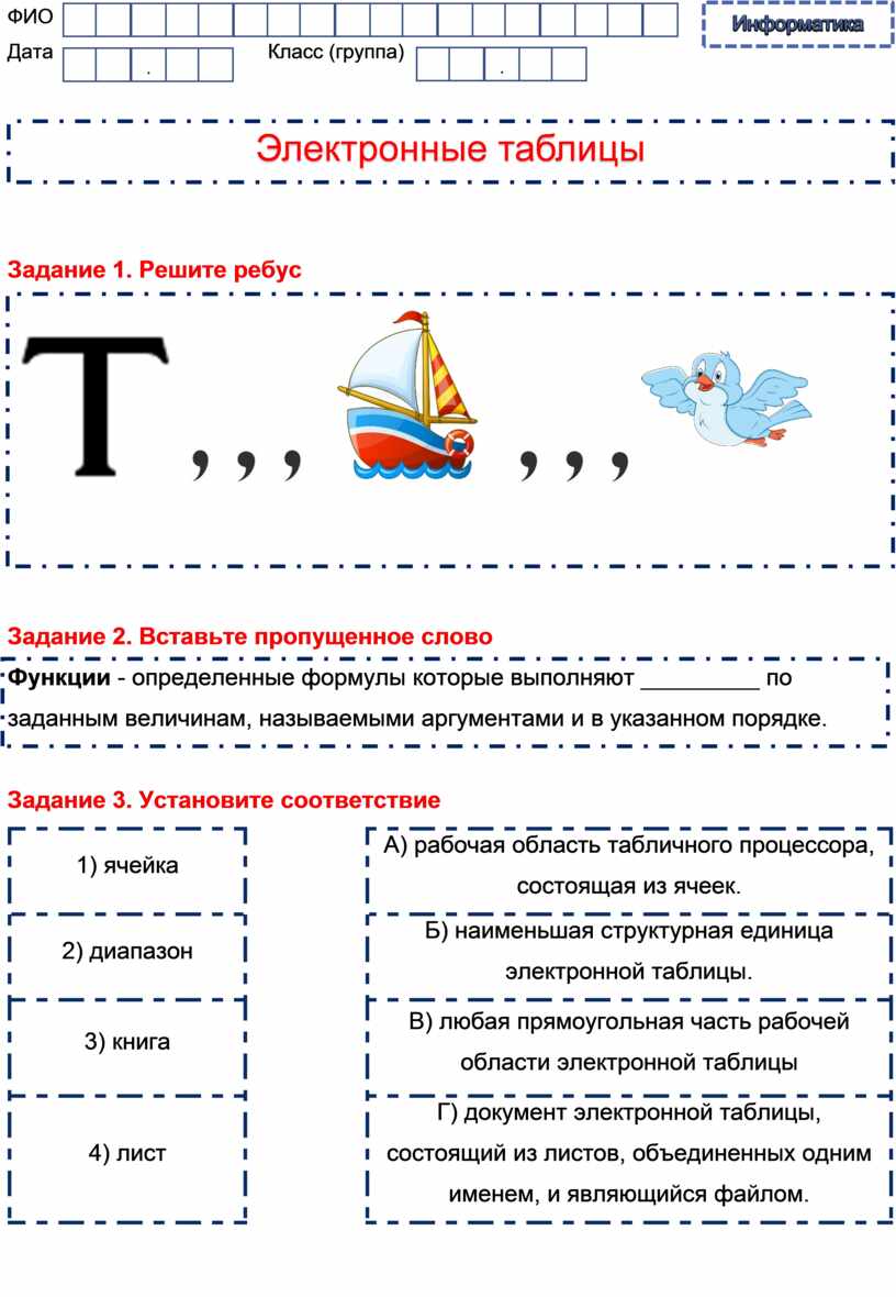 Задание 3. Установите соответствие