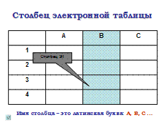Рабочее поле ЭТ разделено линиями по вертикали на столбцы (столбцы обозначаются латинскими буквами A, B, C, …, AB, …< IV, всего их 256), |