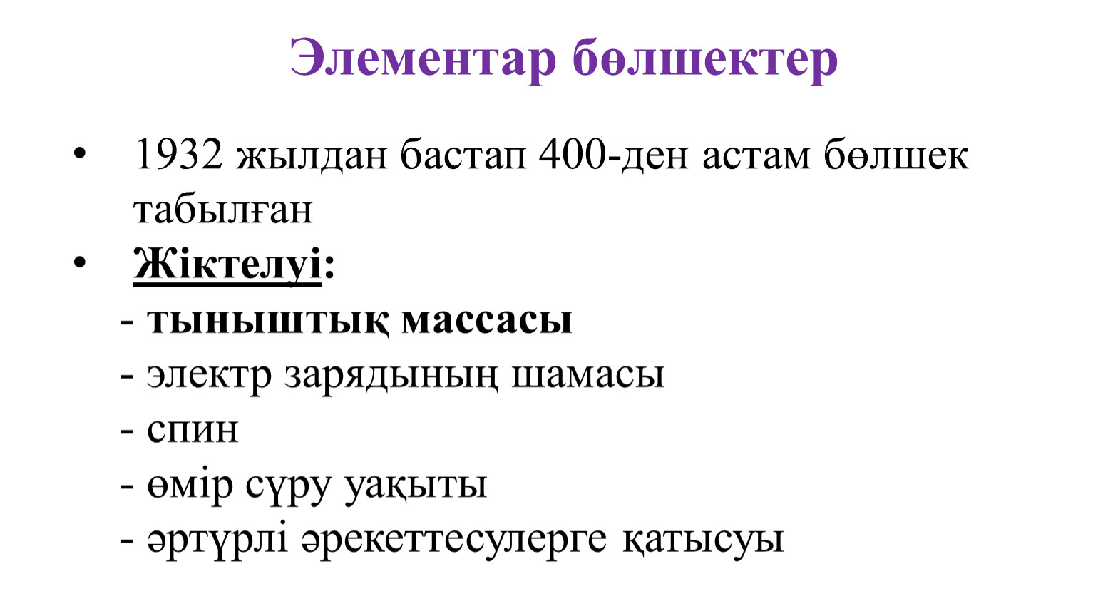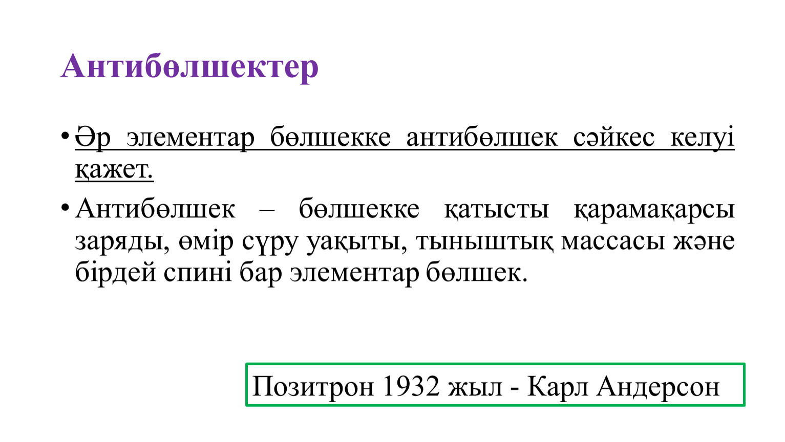 Әр элементар бөлшекке антибөлшек сәйкес келуі қажет.