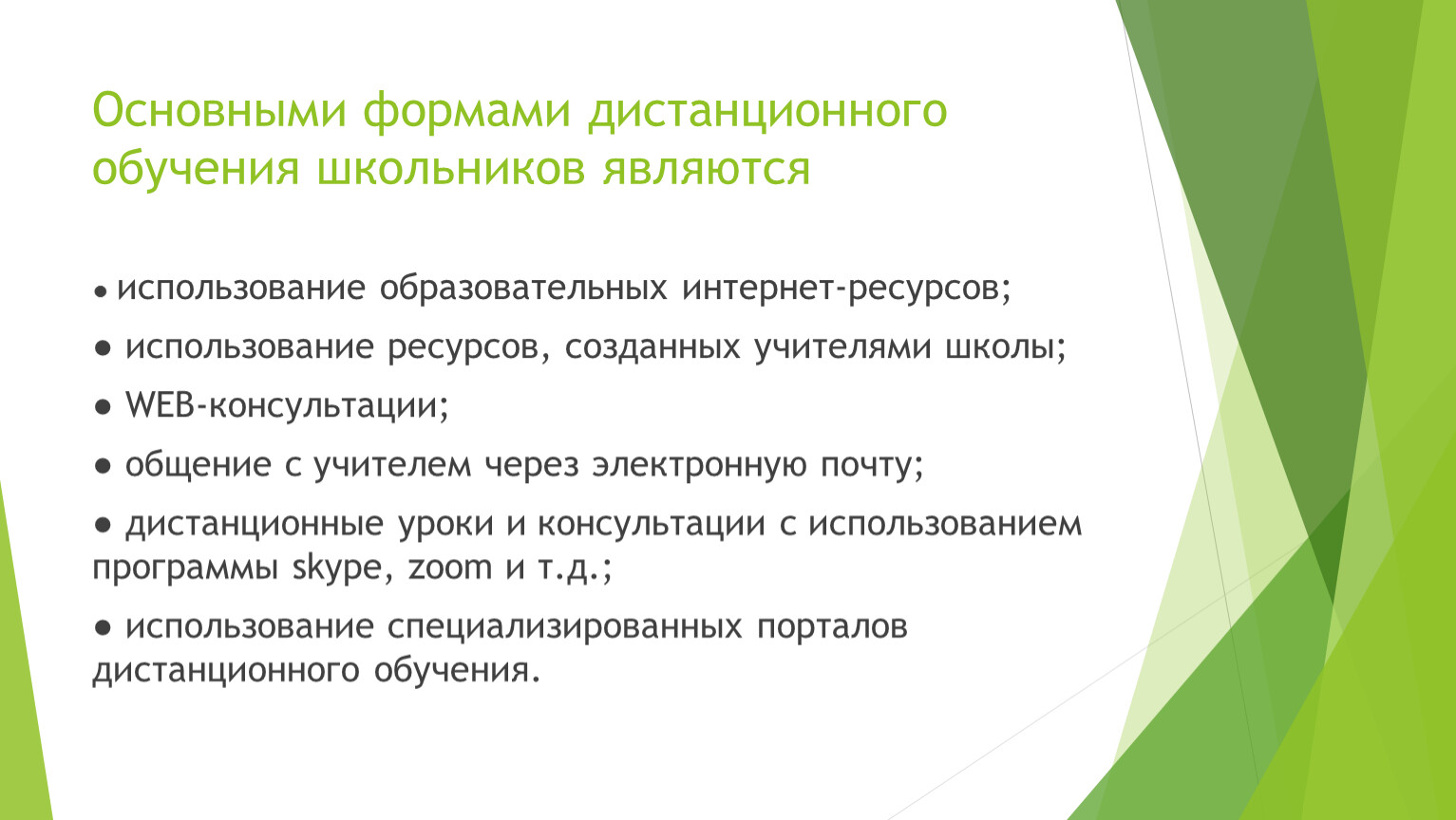 ● дистанционные уроки и консультации с использованием программы skyре, zoom и т.д.;