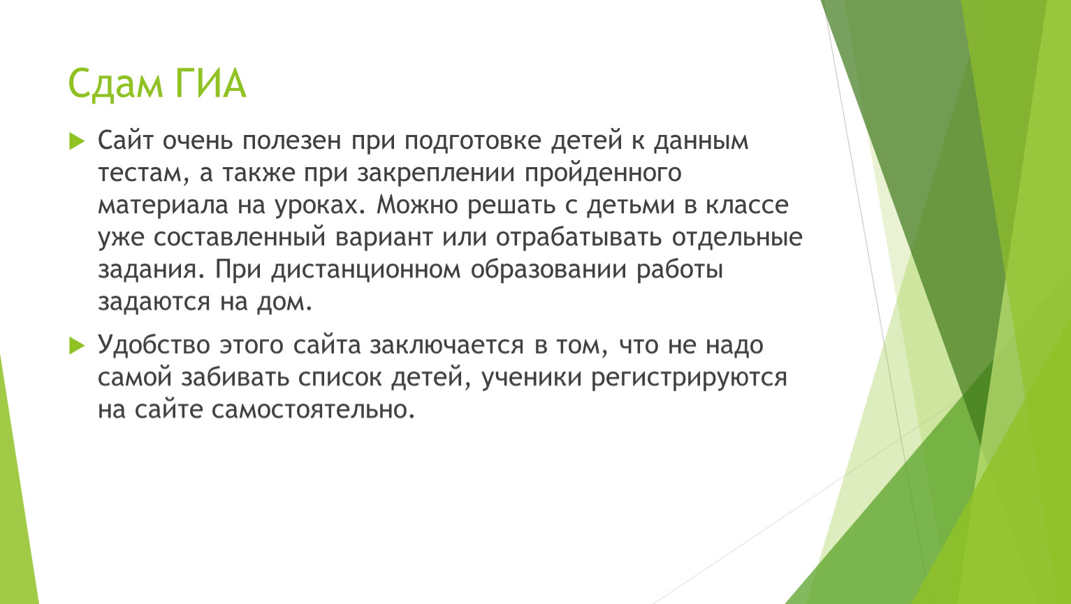 Сайт очень полезен при подготовке детей к данным тестам, а также при закреплении пройденного материала на уроках. Можно решать с детьми в классе уже составленный вариант или отрабатывать отдельные задания. При дистанционном образовании работы задаются на дом.