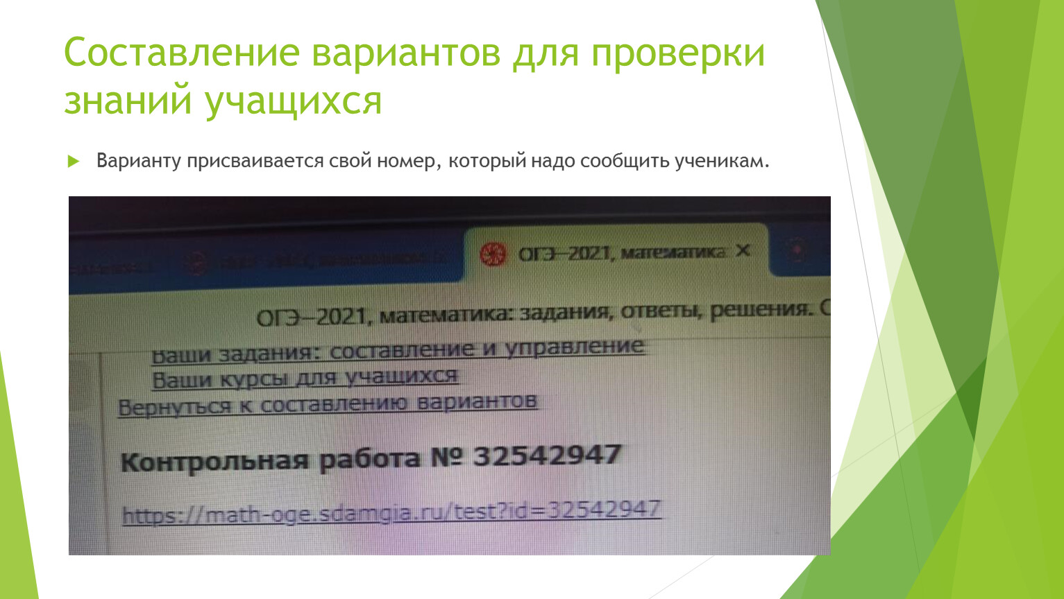 Варианту присваивается свой номер, который надо сообщить ученикам.