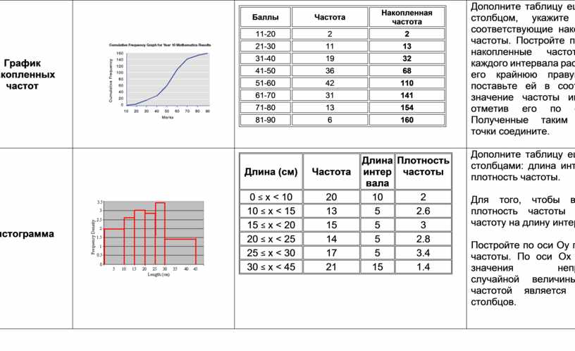Дополните таблицу еще двумя столбцами: длина интервала и плотность частоты.