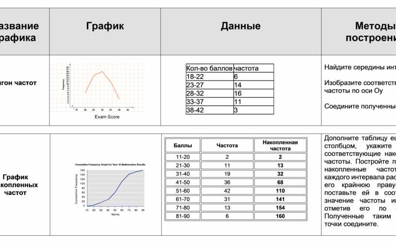 Дополните таблицу еще одним столбцом, укажите в нем соответствующие накопленные частоты. Постройте по оси Оу накопленные частоты. Для каждого интервала рассмотрите его крайнюю правую точку, поставьте ей в соответствие значение частоты интервала, отметив его по оси Оу. Полученные таким образом точки соедините.