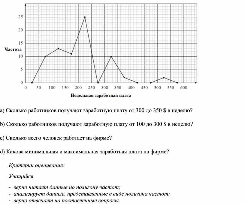 а) Сколько работников получают заработную плату от 300 до 350 $ в неделю?