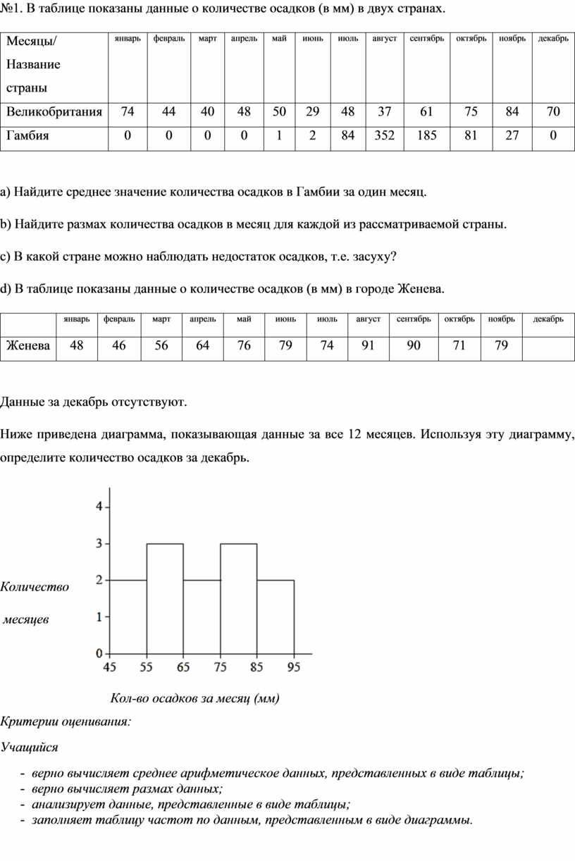 №1. В таблице показаны данные о количестве осадков (в мм) в двух странах.