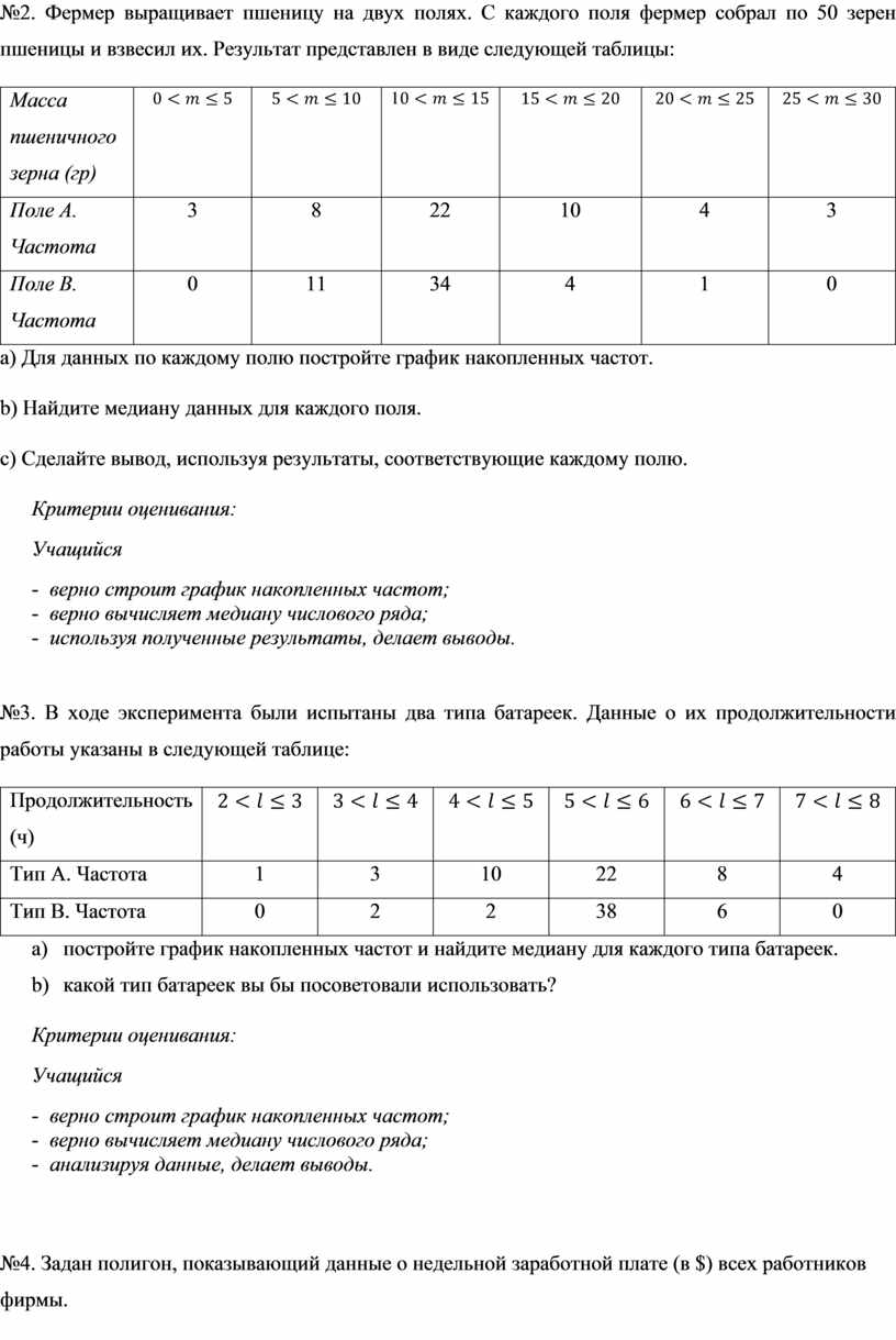 №2. Фермер выращивает пшеницу на двух полях. С каждого поля фермер собрал по 50 зерен пшеницы и взвесил их. Результат представлен в виде следующей таблицы: