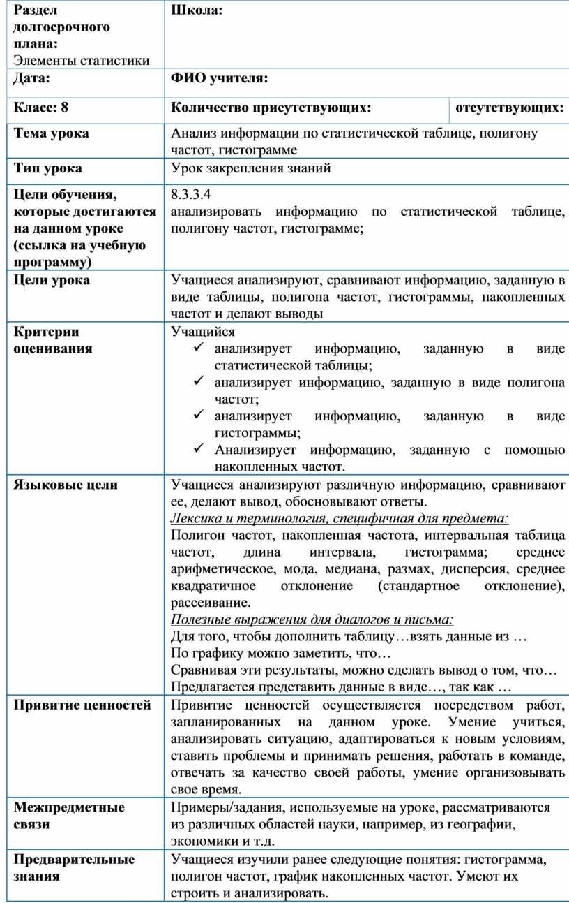 8.3.3.4 анализировать информацию по статистической таблице, полигону частот, гистограмме;