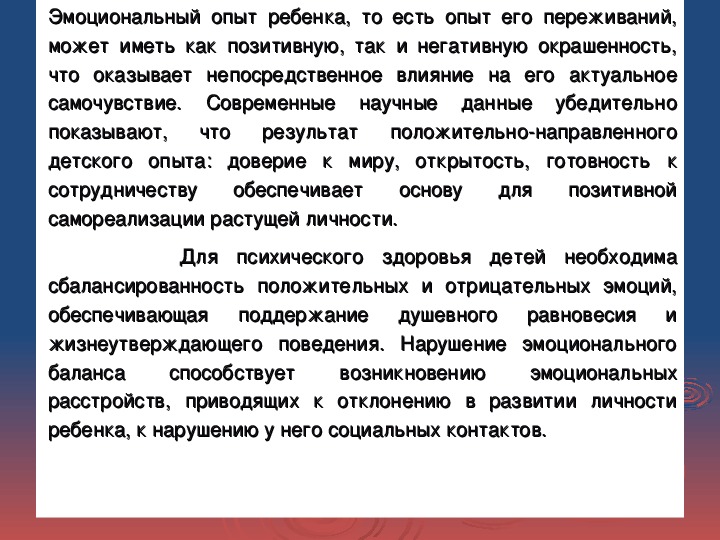 Эмоциональный опыт ребенка, то есть опыт его переживаний,