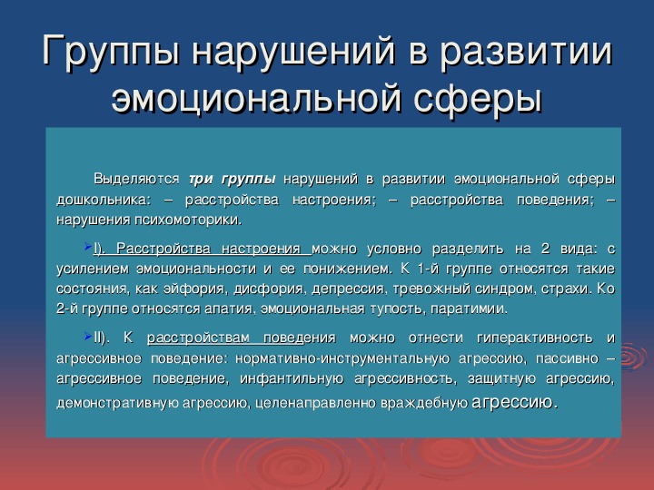дошкольника: – расстройства настроения; – расстройства поведения; –