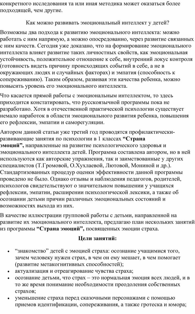 Что касается прямой работы с эмоциональным интеллектом, то здесь приходится констатировать, что русскоязычной программы пока не разработано. Хотя в отечественной практической психологии существует немало наработок в области эмоционального развития ребенка, повышения его рефлексии, эмпатии и саморегуляции.