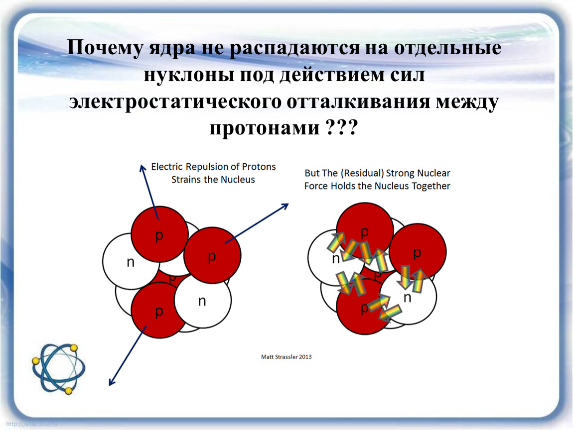 Почему ядра не распадаются на отдельные нуклоны под действием сил электростатического отталкивания между протонами ???