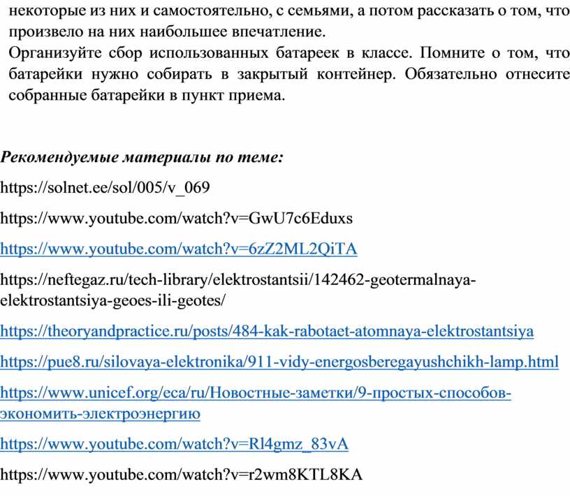 4. Если есть возможность, организуйте по теме урока экскурсию на электростанцию, в музей науки или экоцентр. Ученики могут посетить некоторые из них и самостоятельно, с семьями, а потом рассказать о том, что произвело на них наибольшее впечатление.
