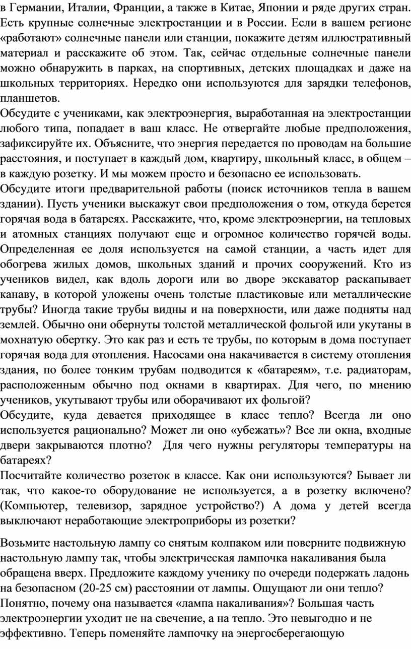 3. Пусть ученики представят, что в вашем здании исчезла энергия (свет, тепло). Что при этом произойдет? Возможно, дети помнят ситуации, когда в их доме не было света. Что при этом происходило?