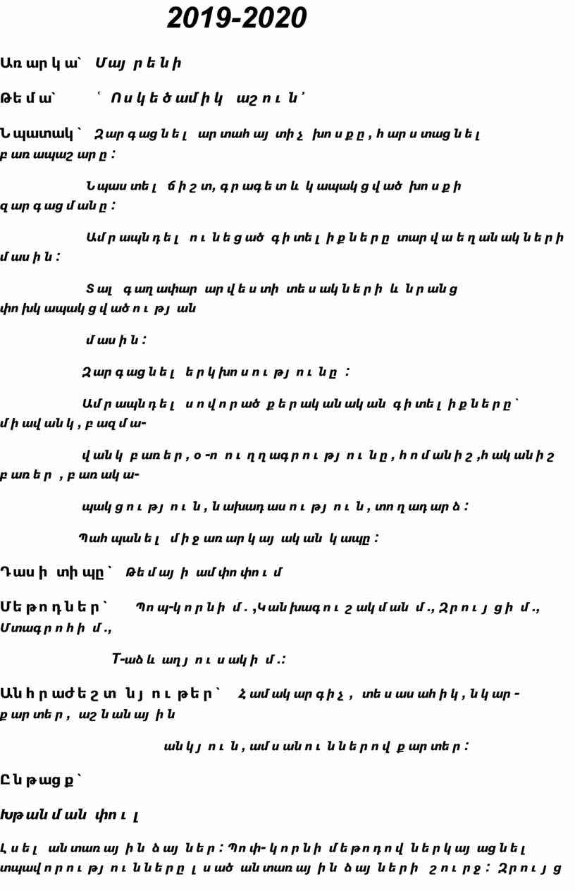 Թեմա՝ ՙՈսկեծամիկ աշուն՚