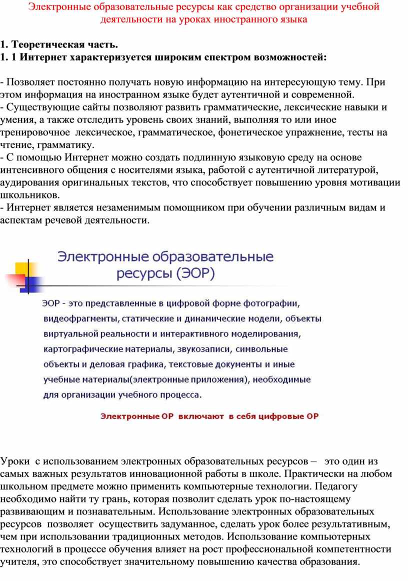 Электронные образовательные ресурсы как средство организации учебной деятельности на уроках иностранного языка