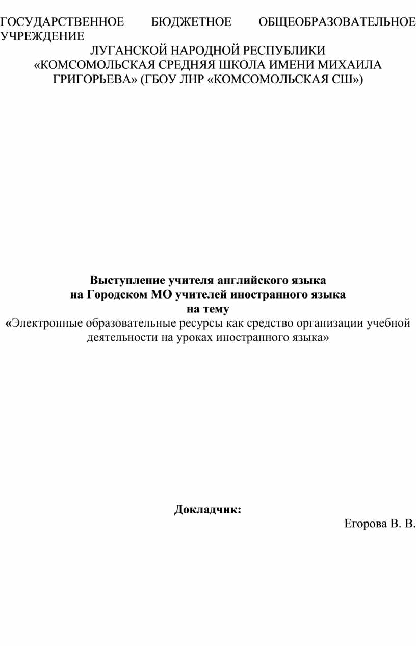 «Электронные образовательные ресурсы как средство организации учебной деятельности на уроках иностранного языка»
