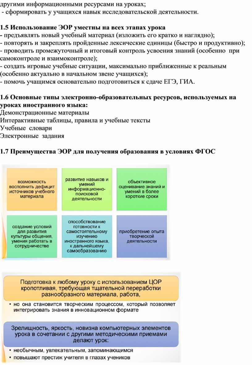 1.7 Преимущества ЭОР для получения образования в условиях ФГОС