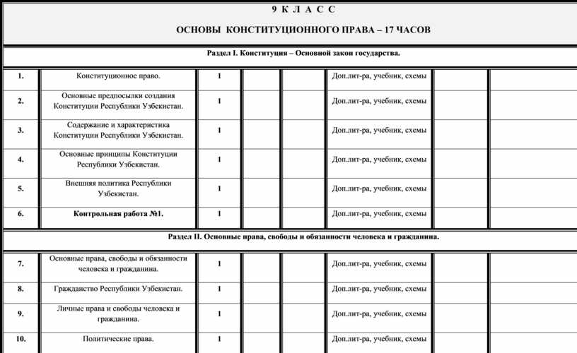 9 К Л А С С ОСНОВЫ КОНСТИТУЦИОННОГО ПРАВА – 17 ЧАСОВ |