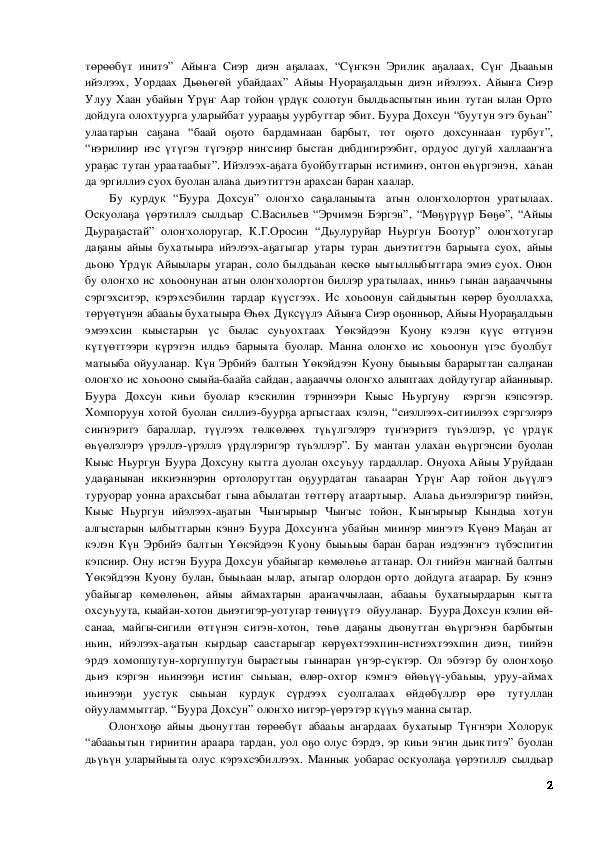 “Буура Дохсун” олоҥхону олоҥхолуур. Мантан көрдөххө, бу олоҥхону суруйааччы