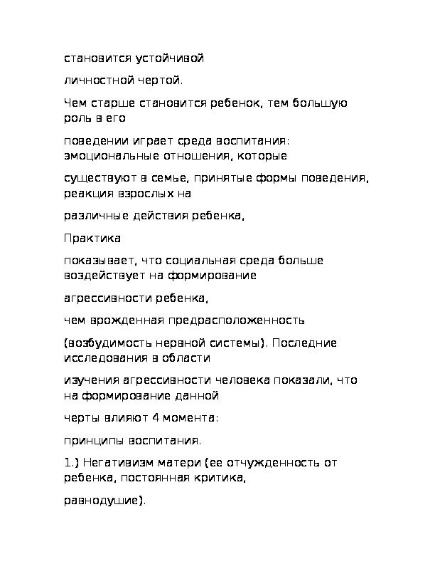 вырастет агрессивным взрослым. Это позволяет предположить, что уровень
