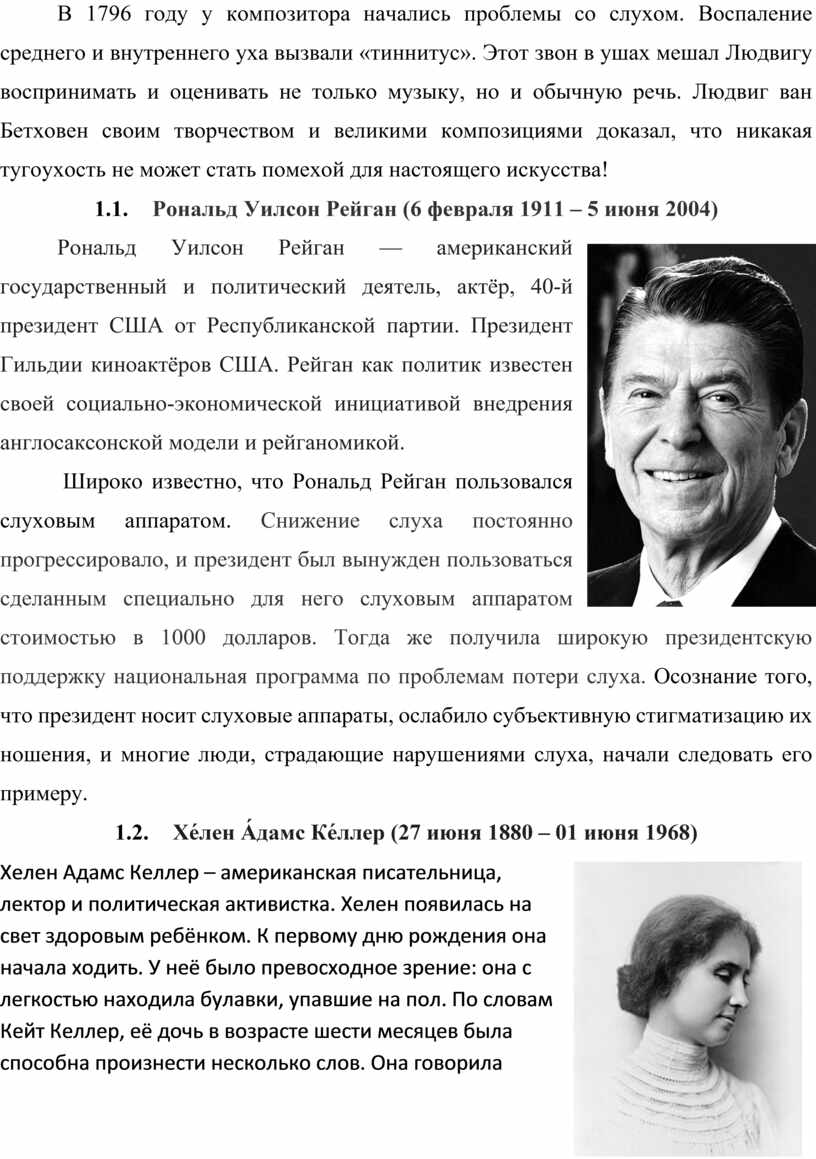 Список известных исторических личностей, страдающих выше означенным недугом достаточен, более того, среди современных знаменитостей тоже есть люди с нарушениями слуха – от звёзд до современных активистов.