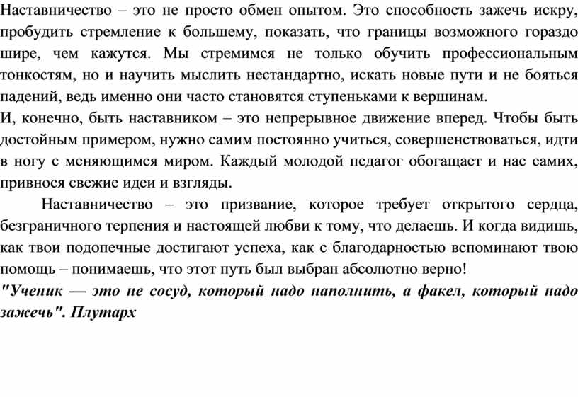 Наставничество – это не просто обмен опытом. Это способность зажечь искру, пробудить стремление к большему, показать, что границы возможного гораздо шире, чем кажутся. Мы стремимся не только обучить профессиональным тонкостям, но и научить мыслить нестандартно, искать новые пути и не бояться падений, ведь именно они часто становятся ступеньками к вершинам.