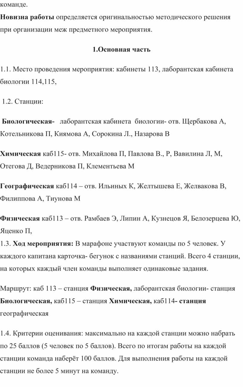 1.4. Критерии оценивания: максимально на каждой станции можно набрать по 25 баллов (5 человек по 5 баллов). Всего по итогам работы на каждой станции команда наберёт 100 баллов. Для выполнения работы на каждой станции не более 5 минут на команду.