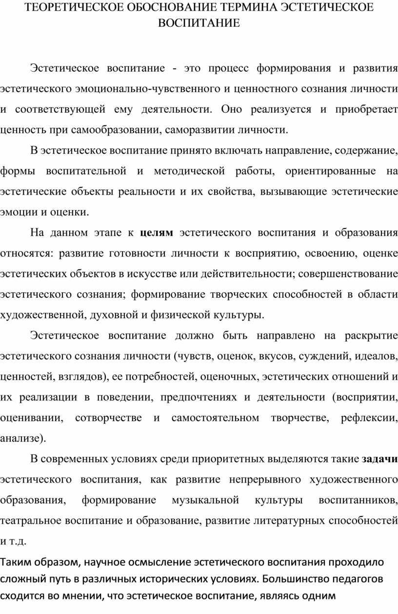 ТЕОРЕТИЧЕСКОЕ ОБОСНОВАНИЕ ТЕРМИНА ЭСТЕТИЧЕСКОЕ ВОСПИТАНИЕ