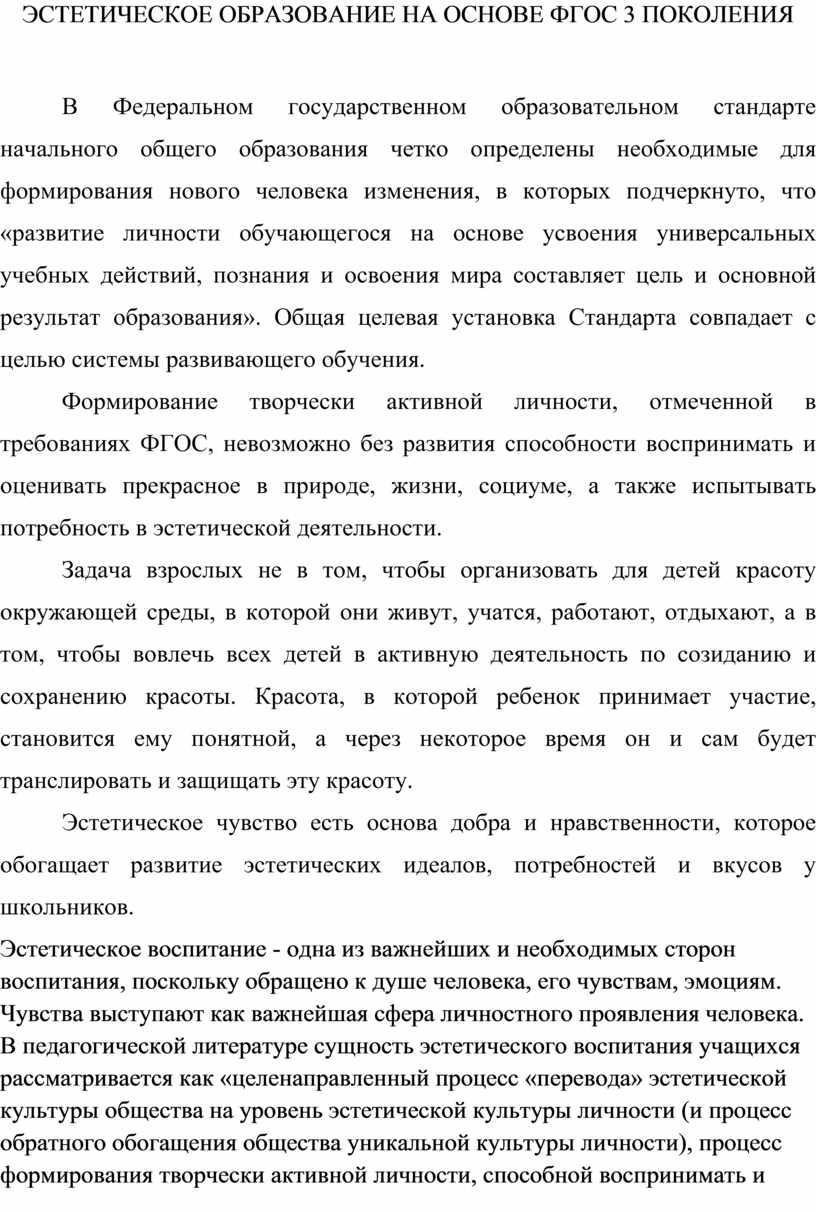 ЭСТЕТИЧЕСКОЕ ОБРАЗОВАНИЕ НА ОСНОВЕ ФГОС 3 ПОКОЛЕНИЯ